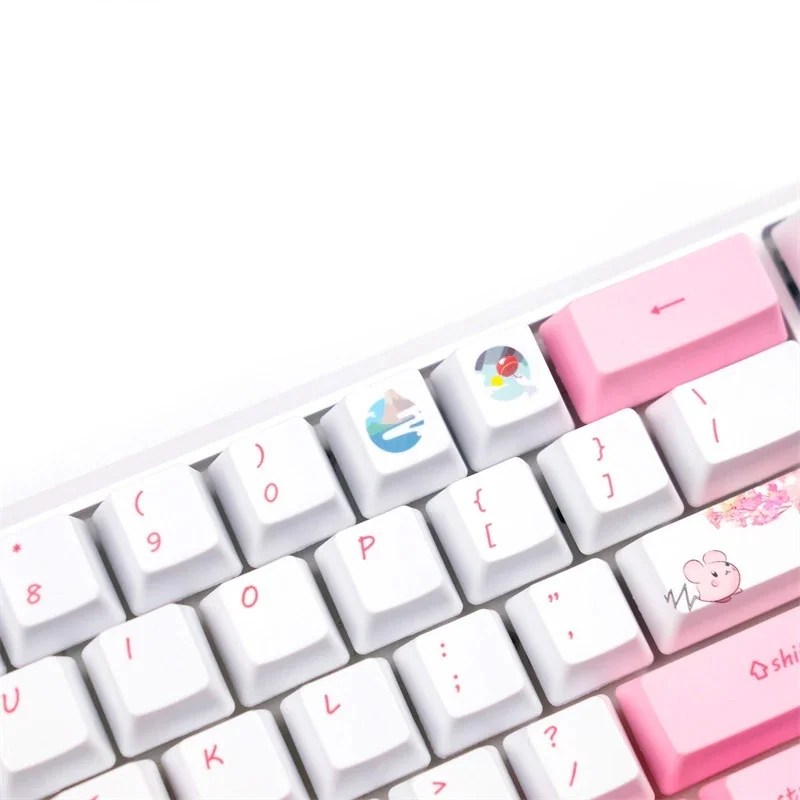 Let the beauty of cherry blossoms and good vibes fill your desktop with the Taya Oco Sakura Tree Love Keycaps Set. Handcrafted with care, this keycap set features a delightful combination of colors that includes white, pink, and blue shades. With a special illustration of Taya Oco from the anime imprinted on it, this keycap set is an optimal choice for anyone who appreciates simplicity in design!